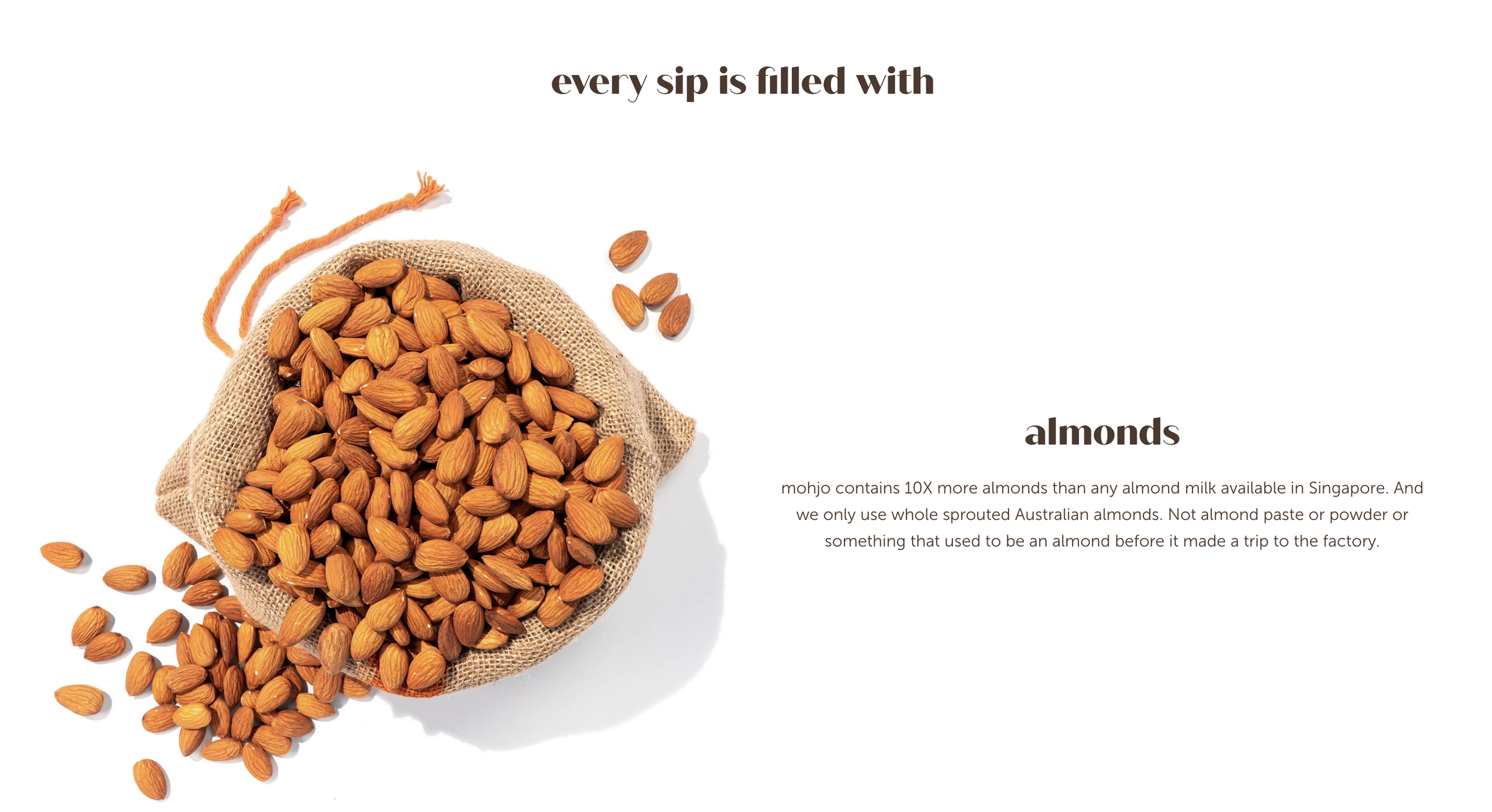 A Singapore-based organic almond milk D2C startup. 99% of alt-milks available in Singapore contain a laundry list of additives and other nasties. Mohjo contains only almonds, dates and water. I worked with the founder from day zero, developing the brand name, packaging content, website content, social media strategy and more.